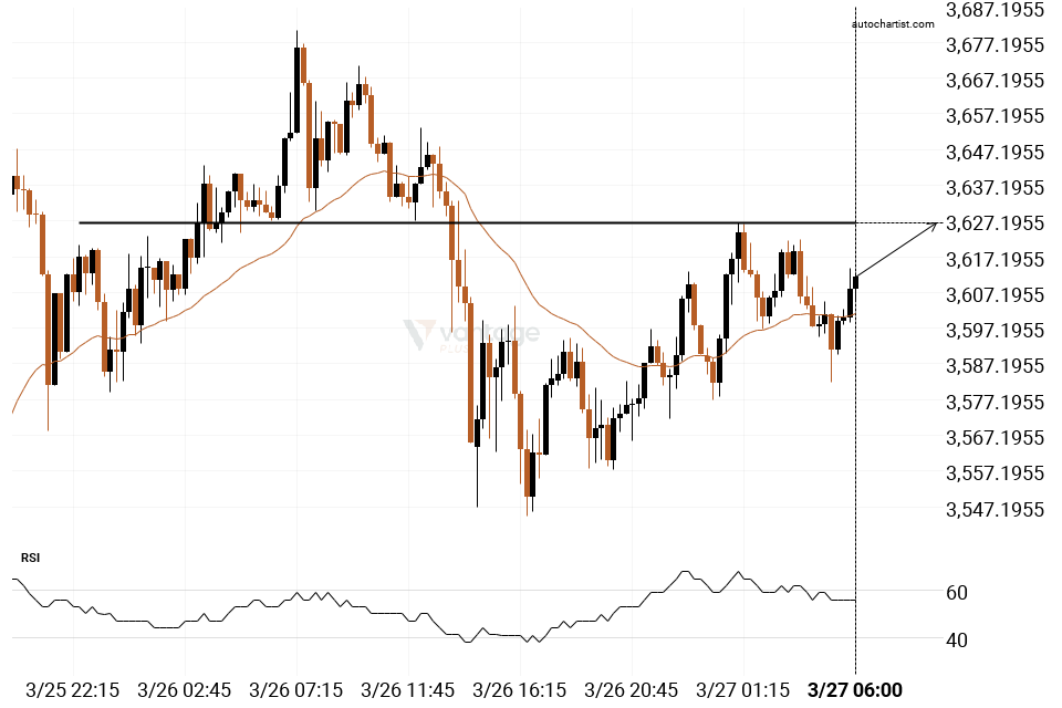 ETHUSD is heading towards a line of 3626.7400. If this movement continues, the price of ETHUSD could test 3626.7400 within the next 7 hours. But don’t be so quick to trade, it has tested this line numerous times in the past, so this movement could be short-lived and end up rebounding.