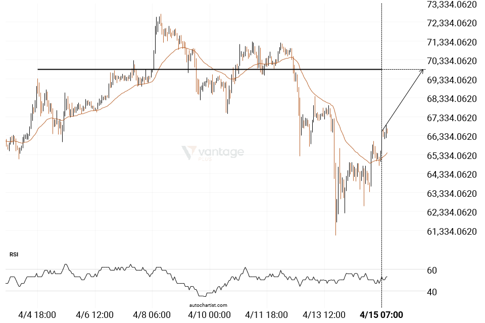 BTCUSD is heading towards 69818.9922 and could reach this point within the next 3 days. It has tested this line numerous times in the past, and this time could be no different, ending in a rebound instead of a breakout. If the breakout doesn’t happen, we could see a retracement back down to current levels.