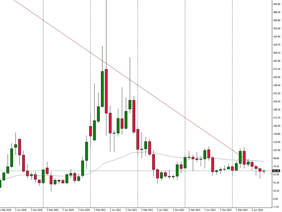 The long-term monthly chart shows this trend impressively. On the other hand, however, the falling trend line in red color also acts as resistance. Only if this zone can be broken could there be fresh potential to reach the 50- moving average in the 84.20 area. Until then, the road seems to be rocky.