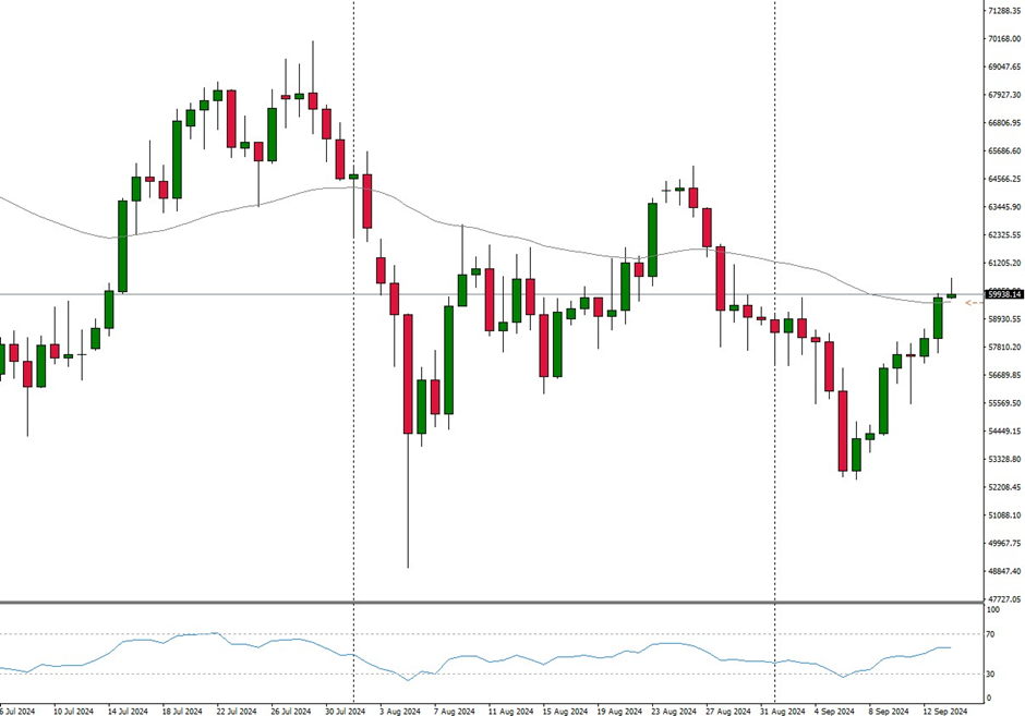 New momentum could only emerge if the psychological USD 60,000 mark can be broken on the upside.