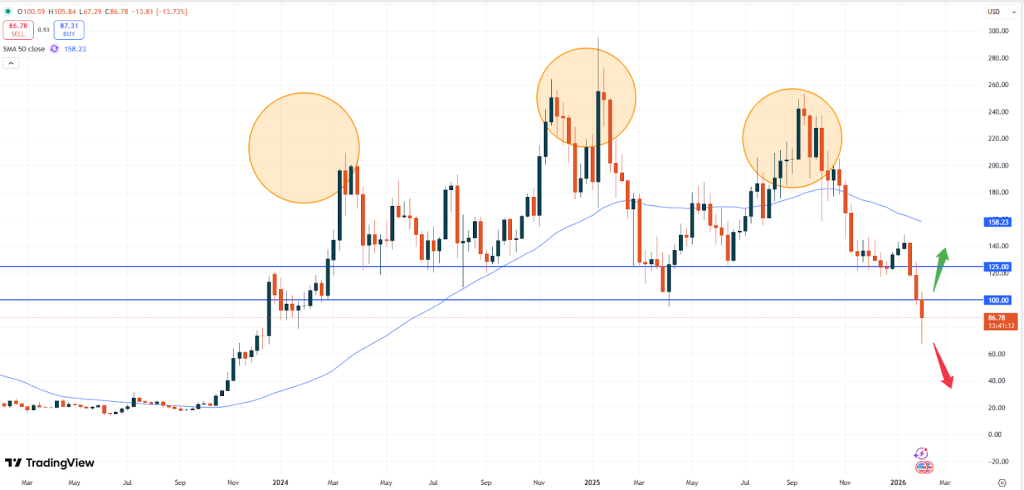– SOL: Solana is trading at USD 86.71. Trading back below the psychological price level below the USD 100.00 zone might still remain negative for Solana. On the other hand, the market has also stopped falling again and might now start to rise further.