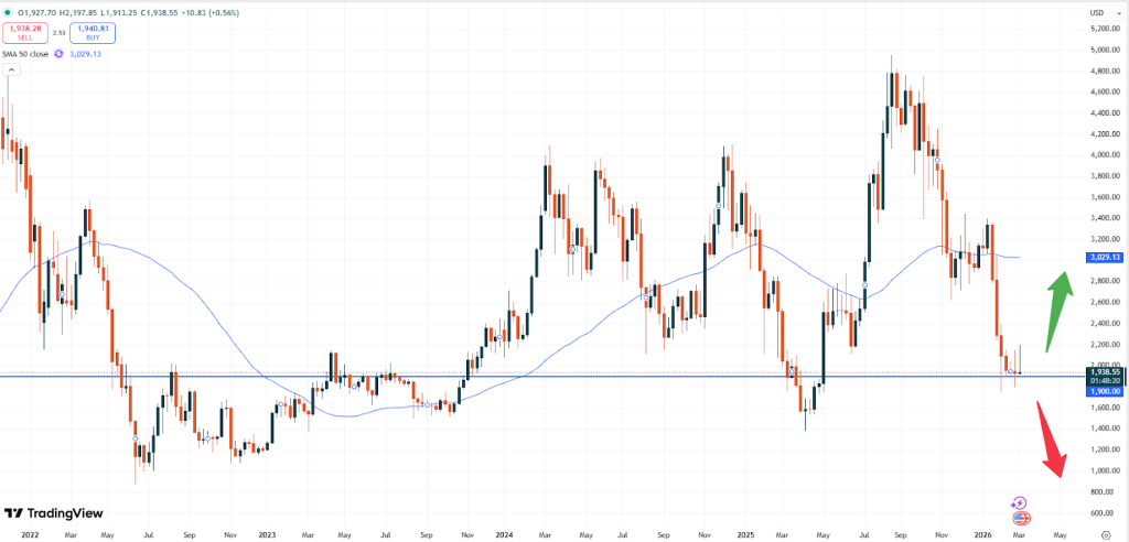 – BTC: Bitcoin is trading at USD 67,909. The market has been falling towards the end of last week and with that eradicating most gains for this week. Being still early in the month of March we still might have already seen the highs if the negative sentiment continues to push prices lower.
