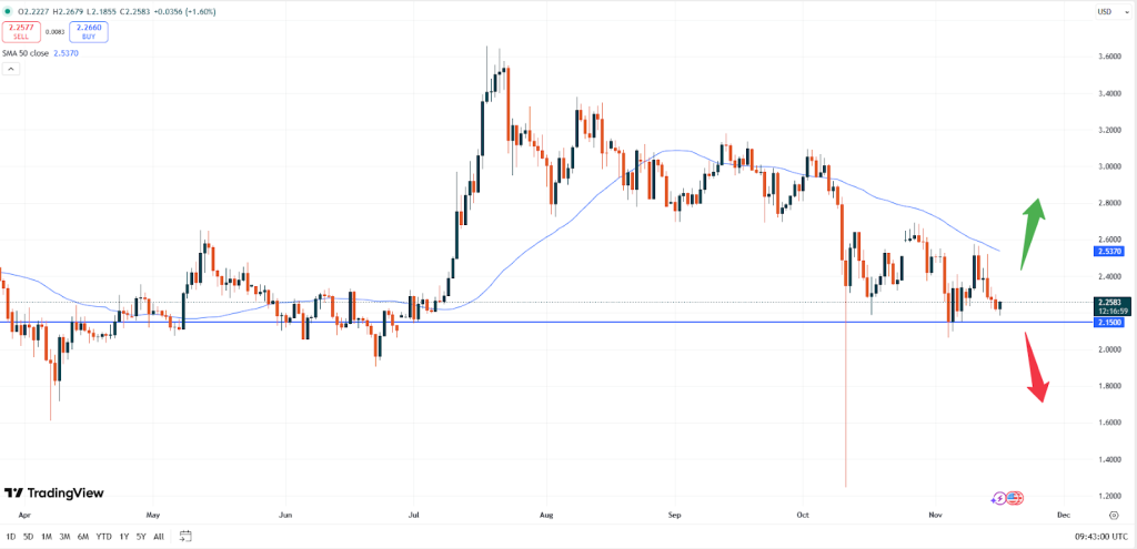 Wenn die negative Stimmung anhält, könnte XRP unter die technische Unterstützungszone von 2,1500 USD fallen. Dies könnte zu einem Preisverfall in Richtung 1,8000 USD führen. Der Markt handelt jedoch recht stabil, sodass dieser Coin im Vergleich zu anderen Token eher an Fahrt gewinnen könnte. Insbesondere ein Durchbrechen des gleitenden 50-Tage-Durchschnitts bei etwa 2,5000 USD wäre hilfreich.