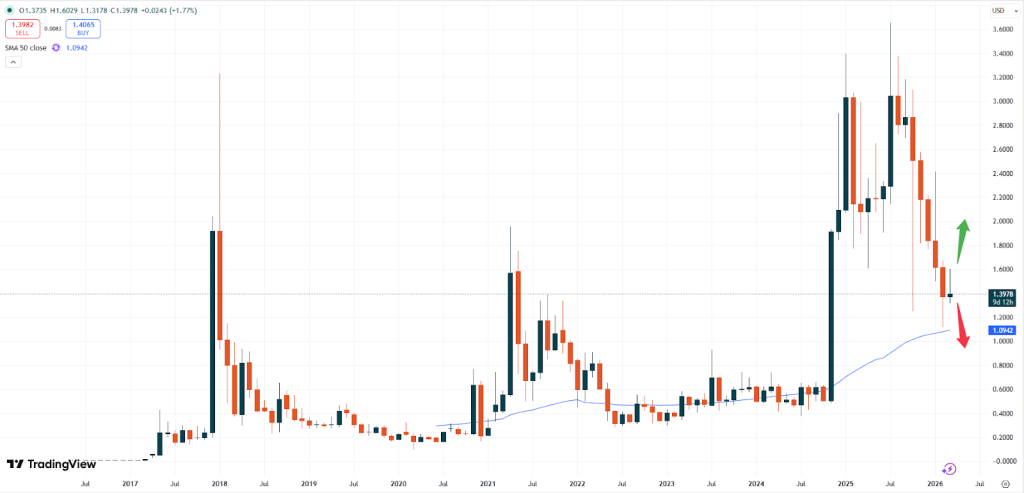 Trader sollten das Niveau von 1,3250 USD im Auge behalten. Ein Bruch dieser Zone, die leicht unter den Tiefs dieses Monats liegt, könnte auf neue Verkaufschancen hindeuten. XRP könnte dann weiter in Richtung des gleitenden 50-Tage-Durchschnitts bei etwa 1,0940 fallen. Saisonale Daten könnten diese negative Stimmung ebenfalls unterstreichen, die sich in den kommenden Monaten fortsetzen könnte.
