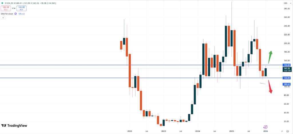 A menos que el mercado rompa por debajo de la zona de los 120,00 USD, cabe esperar un mayor impulso alcista. Por lo tanto, el sentimiento positivo podría empujar a este token hacia el nivel de los 180,00 USD.